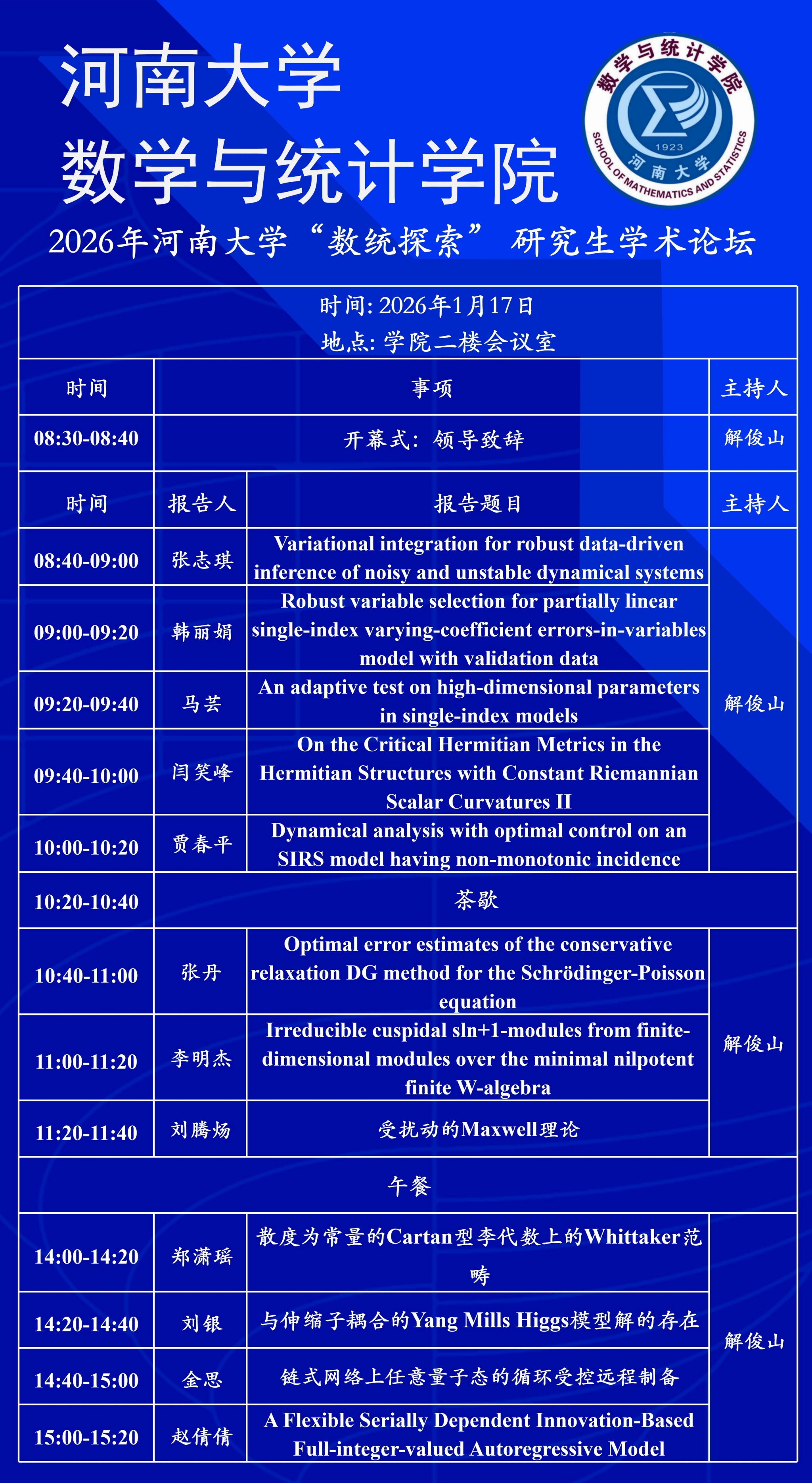 2026年性爱a片 “数统探索” 研究生学术论坛
