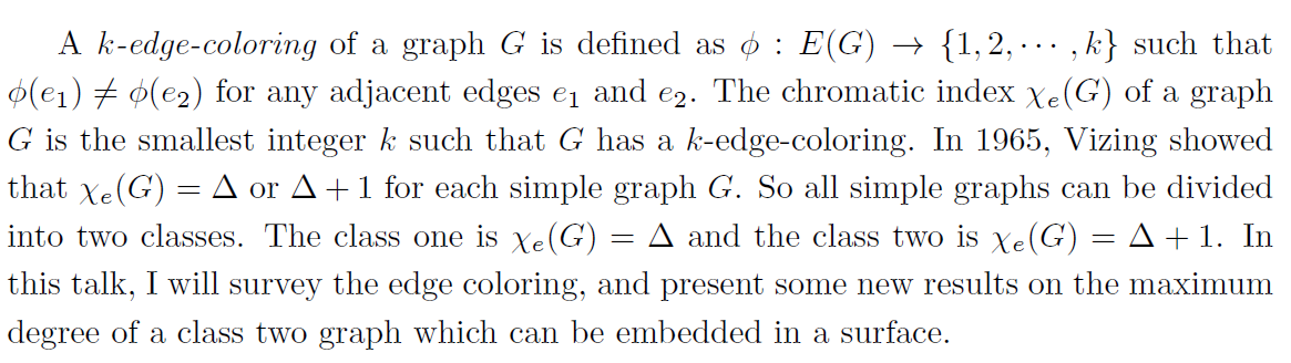 报告题目:Edge Coloring of Simple Graphs on Surface