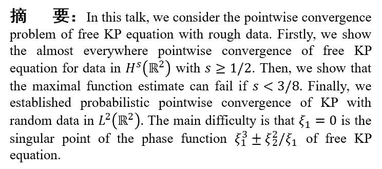报告题目:Pointwise Convergence Problem of KP Equation with Rough Data and Random Data