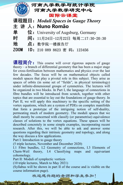 性爱a片 国际云课堂课程:Moduli Spaces in Gauge Theory