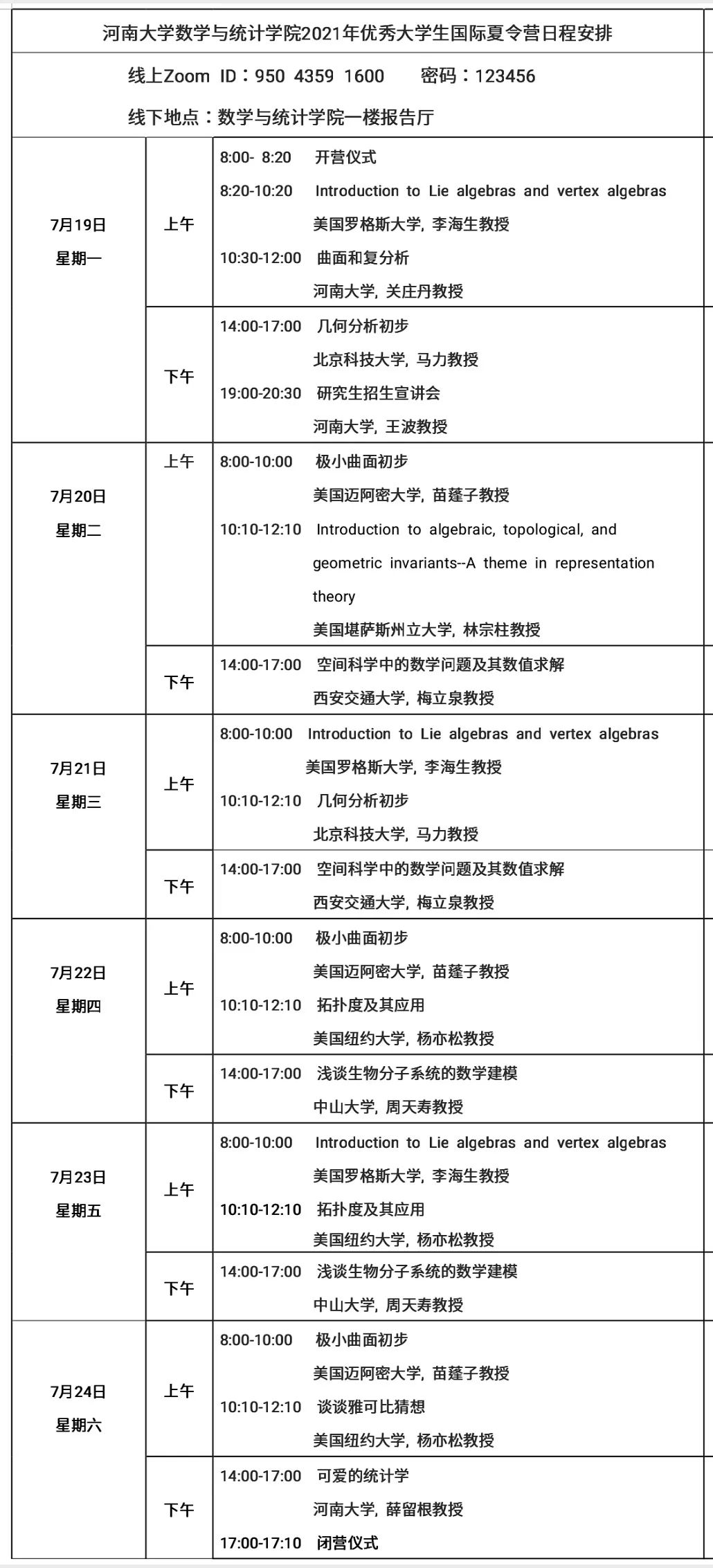 具体日程安排