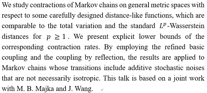 报告题目:Strict Kantorovich Contractions for Markov Chains and Euler Schemes with General Noise