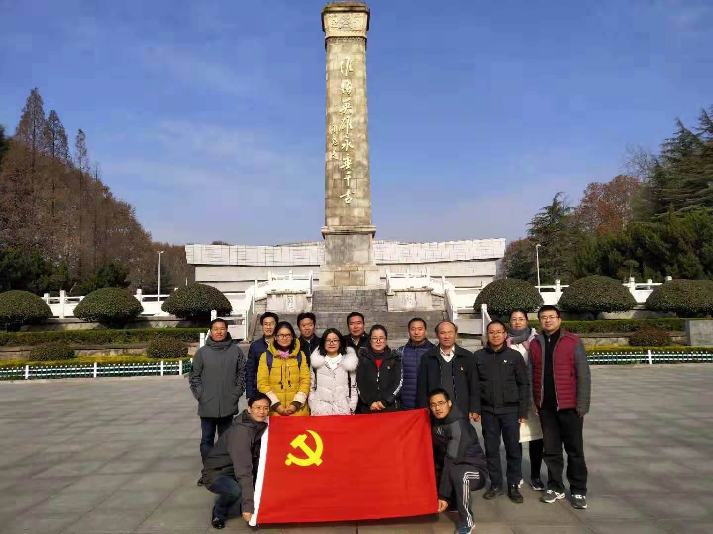 上午7:30,院党委书记史富强、副书记赵红磊、副院长杨一平及数学与应用数学系党支部的党员老师、入党积极分子代表共14人集体乘车,前往商丘市永城陈官庄淮海战役纪念馆进行参观学习。