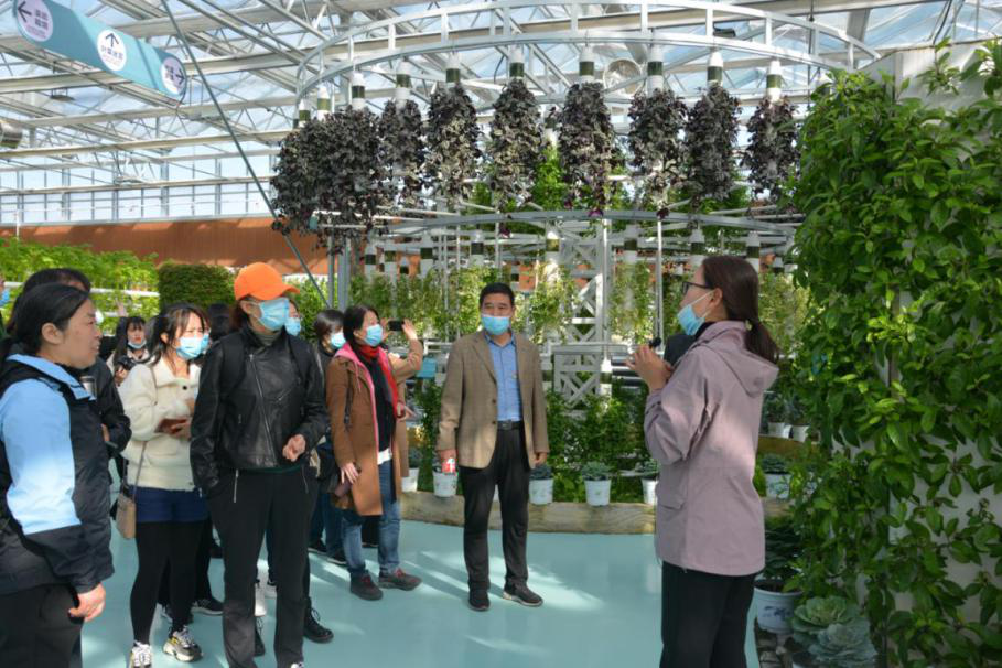 在解说员的带领下,大家先后参观了汴州粮仓、汴都水韵、扶正本草等活动馆。展览馆以“科技引领、文化融合、幸福生活”为理念,汇聚直立式管道栽培、滚筒式栽培等先进无土栽培科技,并引进先进设施、加工技术,向观众们展示了农业先进高效的生产模式。