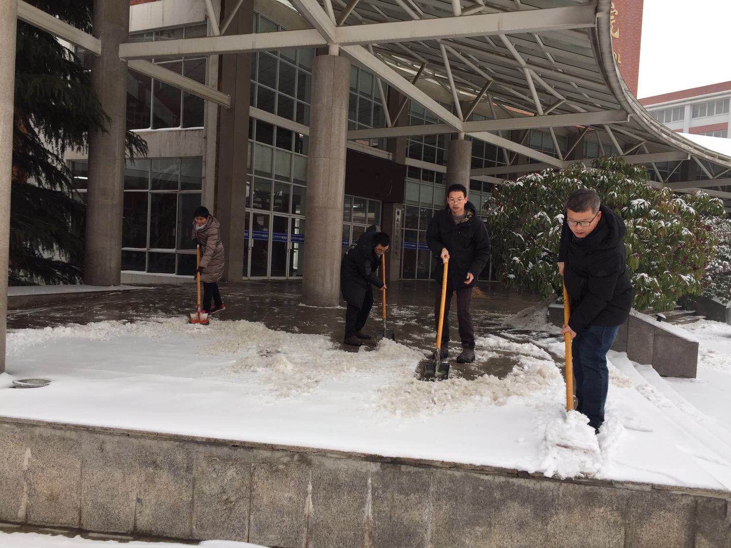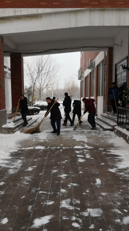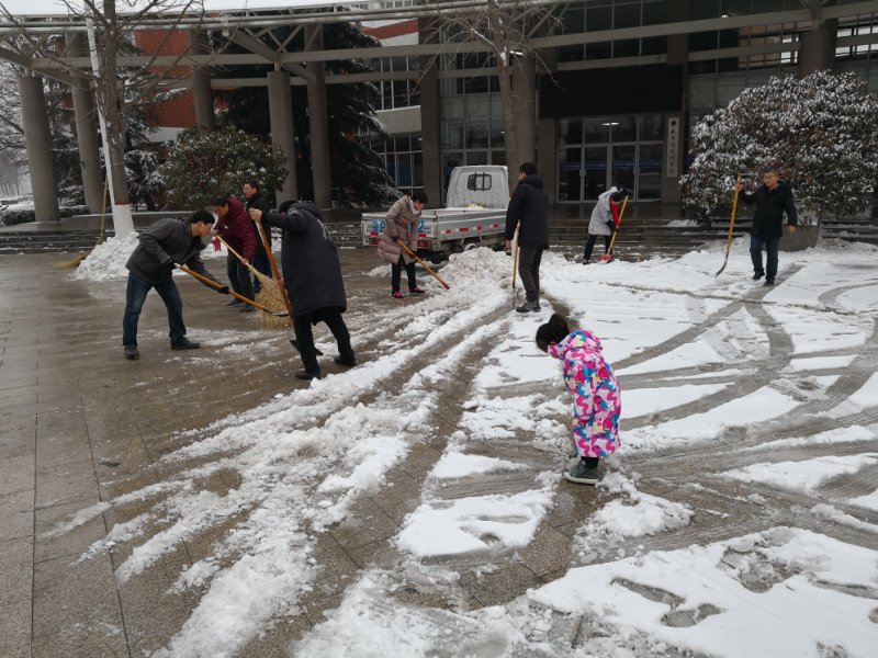 2019年2月13-14日,古城开封普降瑞雪 , 美丽的河大校园也披上了洁白的外衣。银装素裹的美景为大家带来欣喜的同时,也给校园安全出行带来了隐患。性爱a片 领导班子带领在院教职工积极行动起来,开展扫雪活动,清除性爱a片 主干道和周围积雪,方便师生出行。
