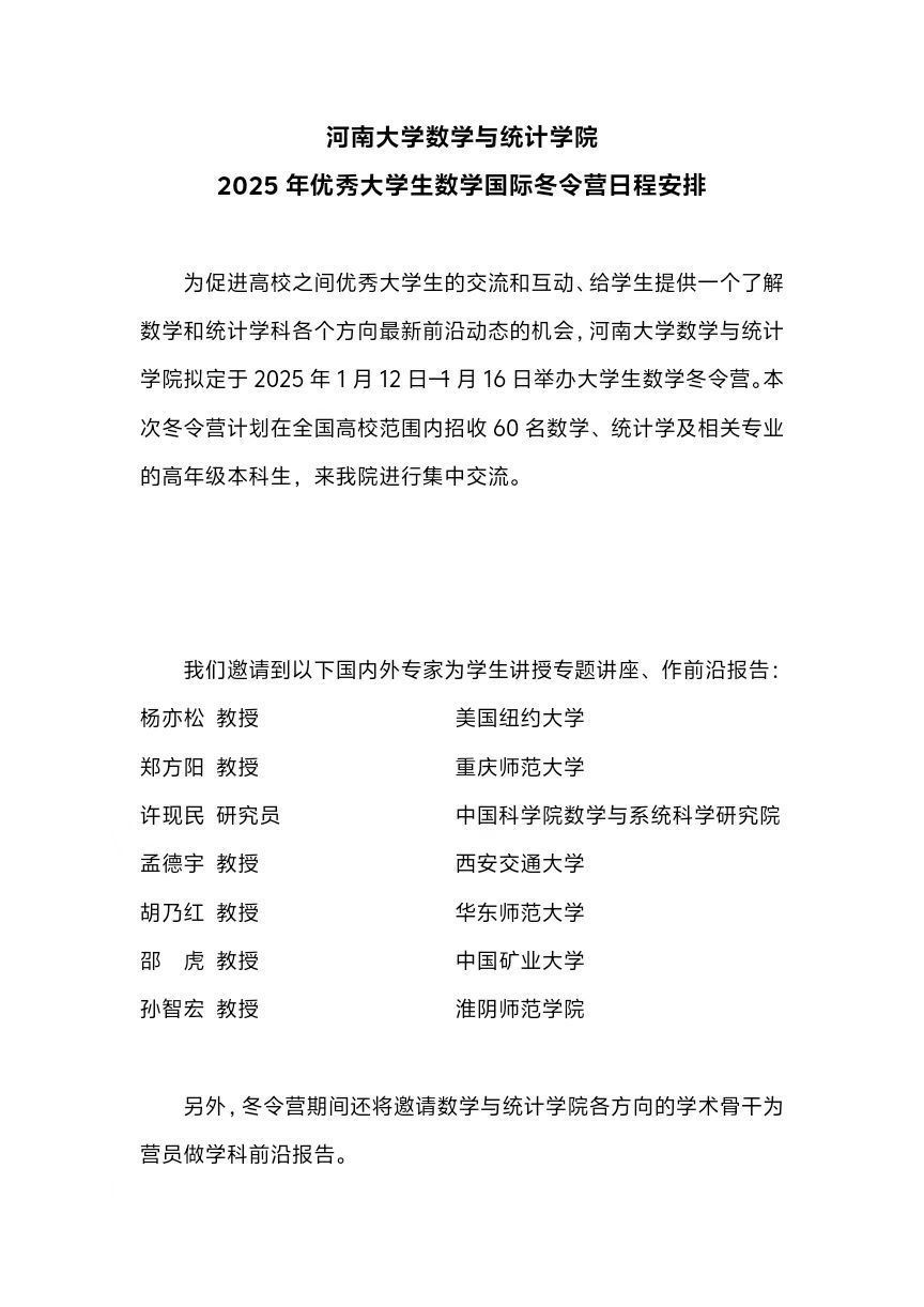 性爱a片 2025年优秀大学生数学国际冬令营日程安排