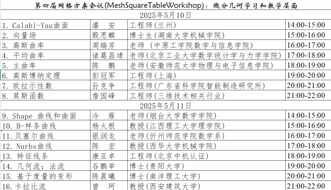 第四届网格方桌会议——面向代码的微分几何学习与教学