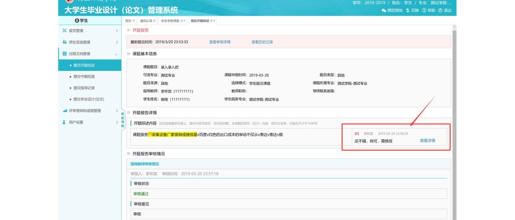 ※开题综述、中期检查提交、审核、批注方式一致,以下只做一种解释,其他如同