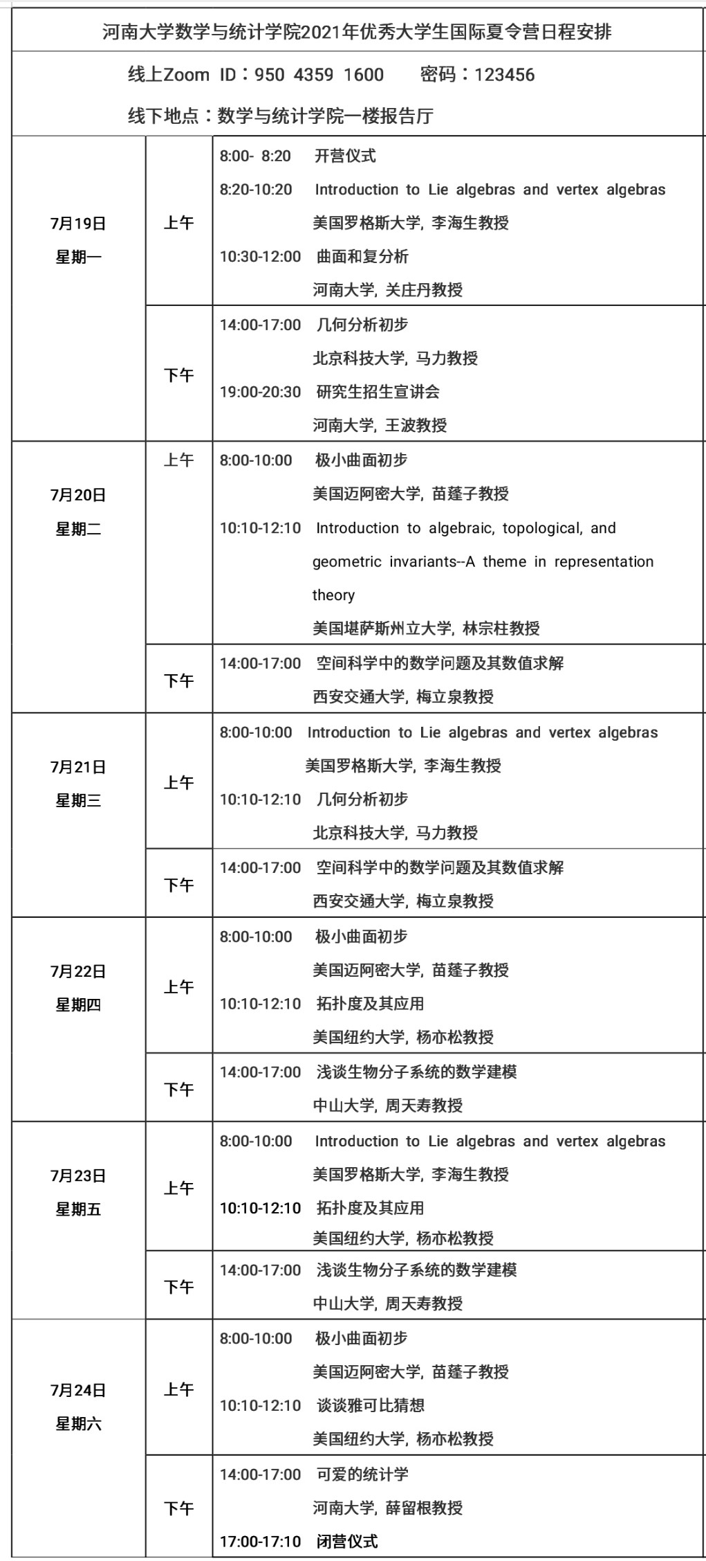 拟定于2021年7月19日—7月24日举办大学生数学夏令营。本次夏令营计划在全国高校范围内招收100名数学、统计学及相关专业的三年级本科生,采用线上线下相结合的方式进行集中交流。