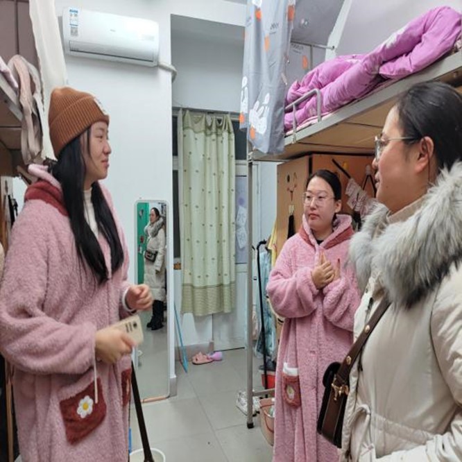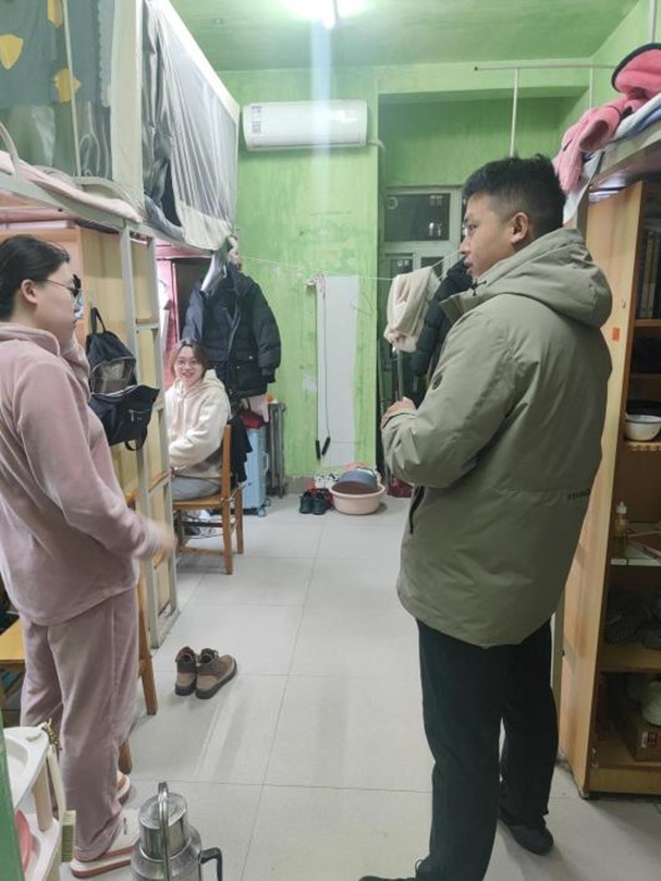 走访过程中,辅导员们对学生宿舍的寝室卫生和安全隐患进行了排查,并提醒同学们注意用电、用火安全,预防火灾等意外事故的发生,在寝室严禁使用违规电器,希望每位寝室长能够负起责任。同时,辅导员们督促同学们要维持公寓的卫生整洁,爱护寝室环境,妥善保管贵重物品,共同营造良好的寝室环境。他们与同学们沟通交流,深入了解学生们的生活情况,并提醒同学们在宿舍要注意保持室内空气流通,多穿衣服、多吃热食、多喝热水,外出注意防寒保暖,做好防护措施。