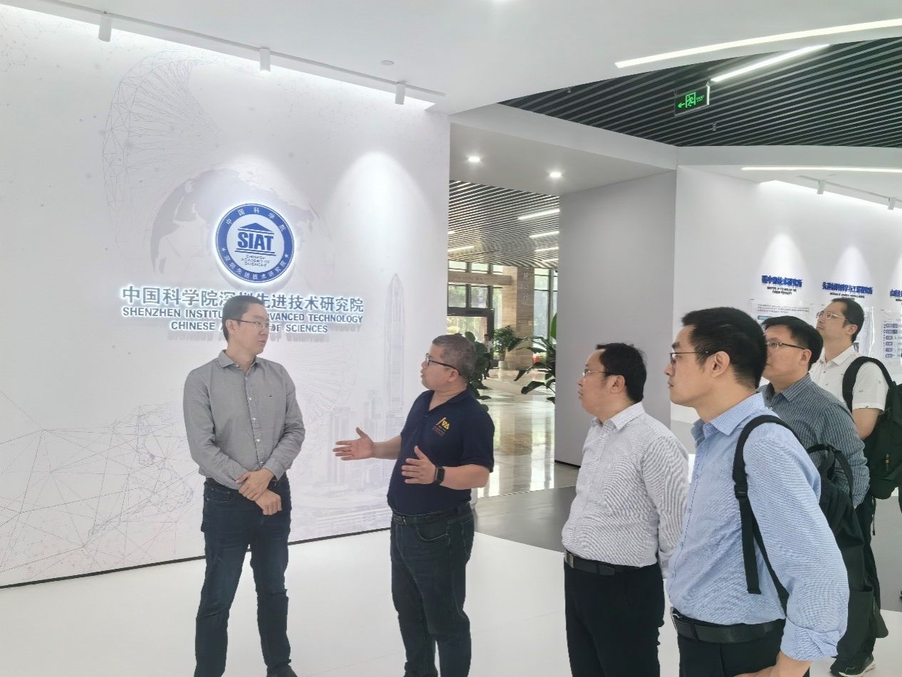 深圳先进技术研究院,胡战利研究员带领调研组一行参观了研究院展厅和生物医学与健康工程研究所,并组织了座谈交流。双方分别介绍了发展历史、科学研究、师资队伍和人才培养等方面的情况,并期待在学生联合培养、高水平科研平台创建等方面加强交流,深化合作。