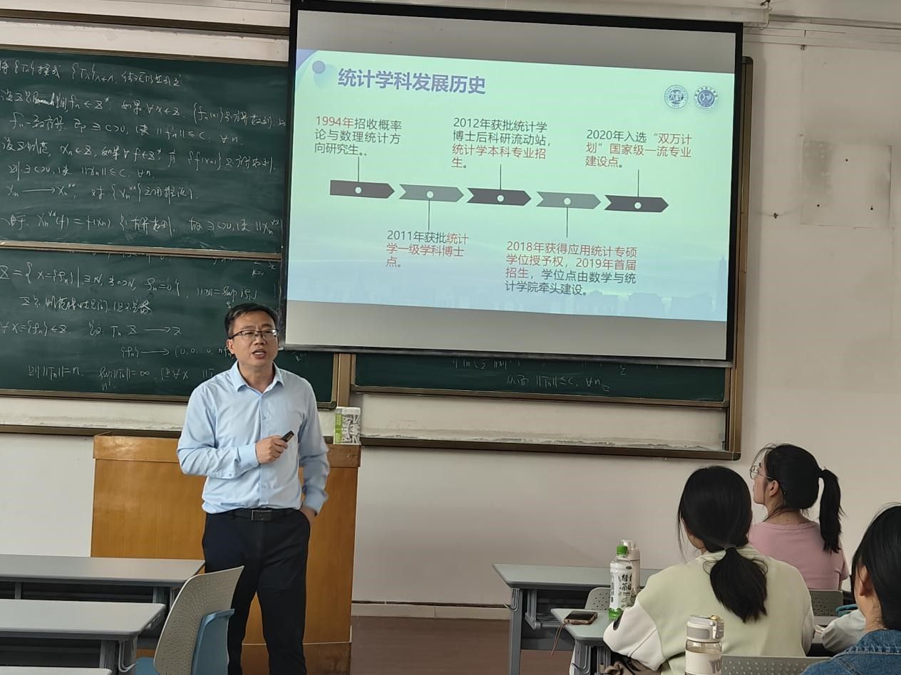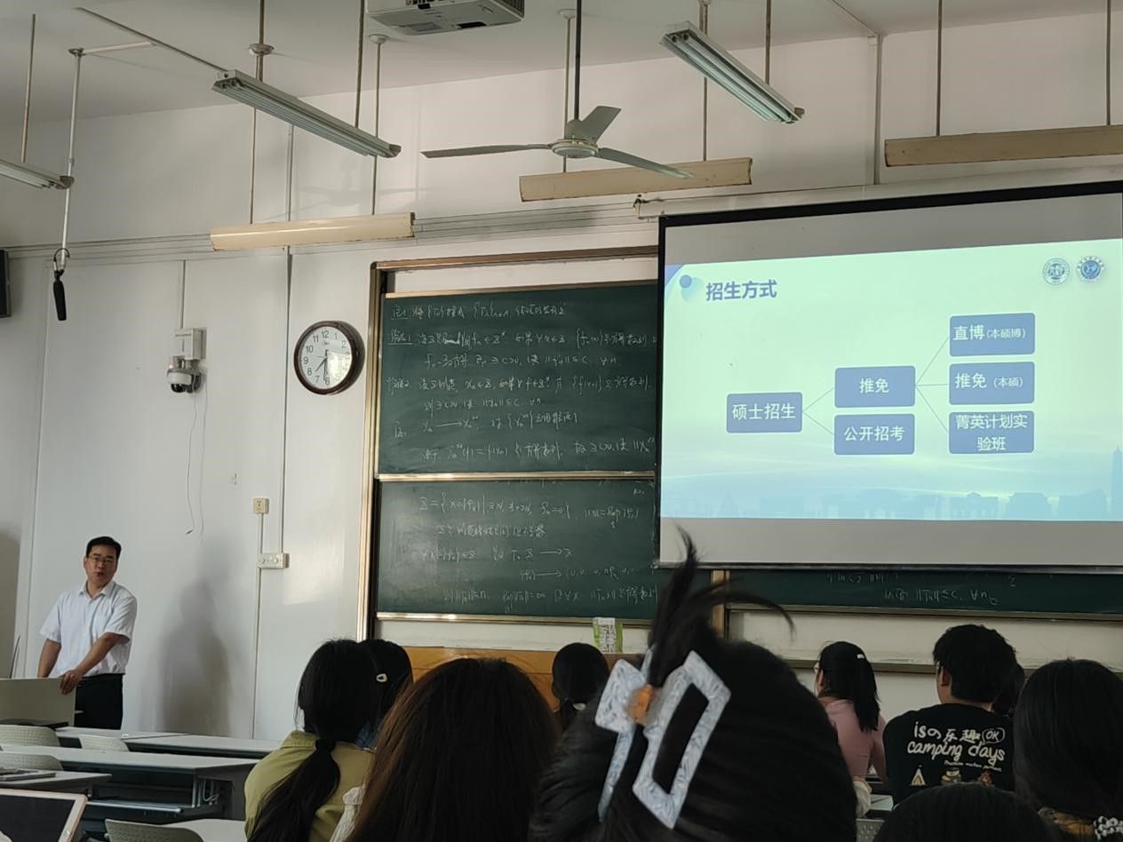 硕博招生政策、各专业研究方向及优势,5月9日下午,由统计专业解俊山、郑晨老师;数学专业肖运海、陈士超、葛志昊、杨晓慧、刘根强、王沛、李鸿军、刘忠原老师和学科教学张玉环老师分别在综合教学楼2103、2201教室召开研究生专业宣讲会,为性爱a片