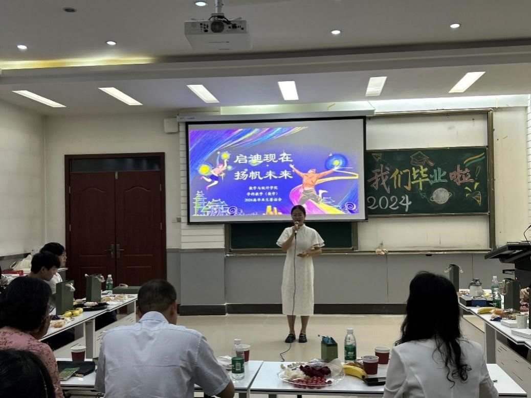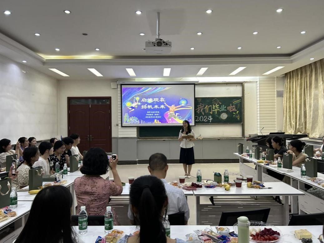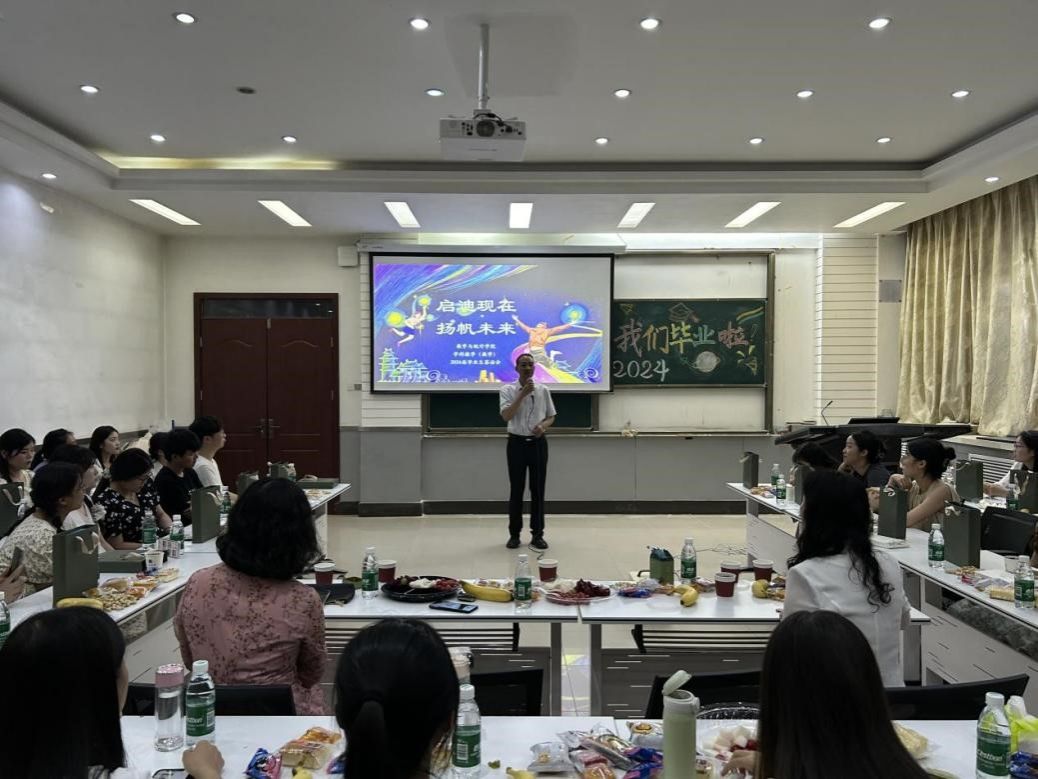 在一楼报告厅开展“启迪现在,扬帆未来”茶话会活动,参会人员有2024届学科教学(数学)毕业生、数学教育类在校研究生,特别邀请职占江、范利萍、张玉环等导师代表,本次活动由张玉环和2023级学科教学(数学)班长张泽奇组织,2023级学科教学(数学)宋翔宇主持。大家共聚一堂,欢送即将毕业的研究生,共话职前教师成长。