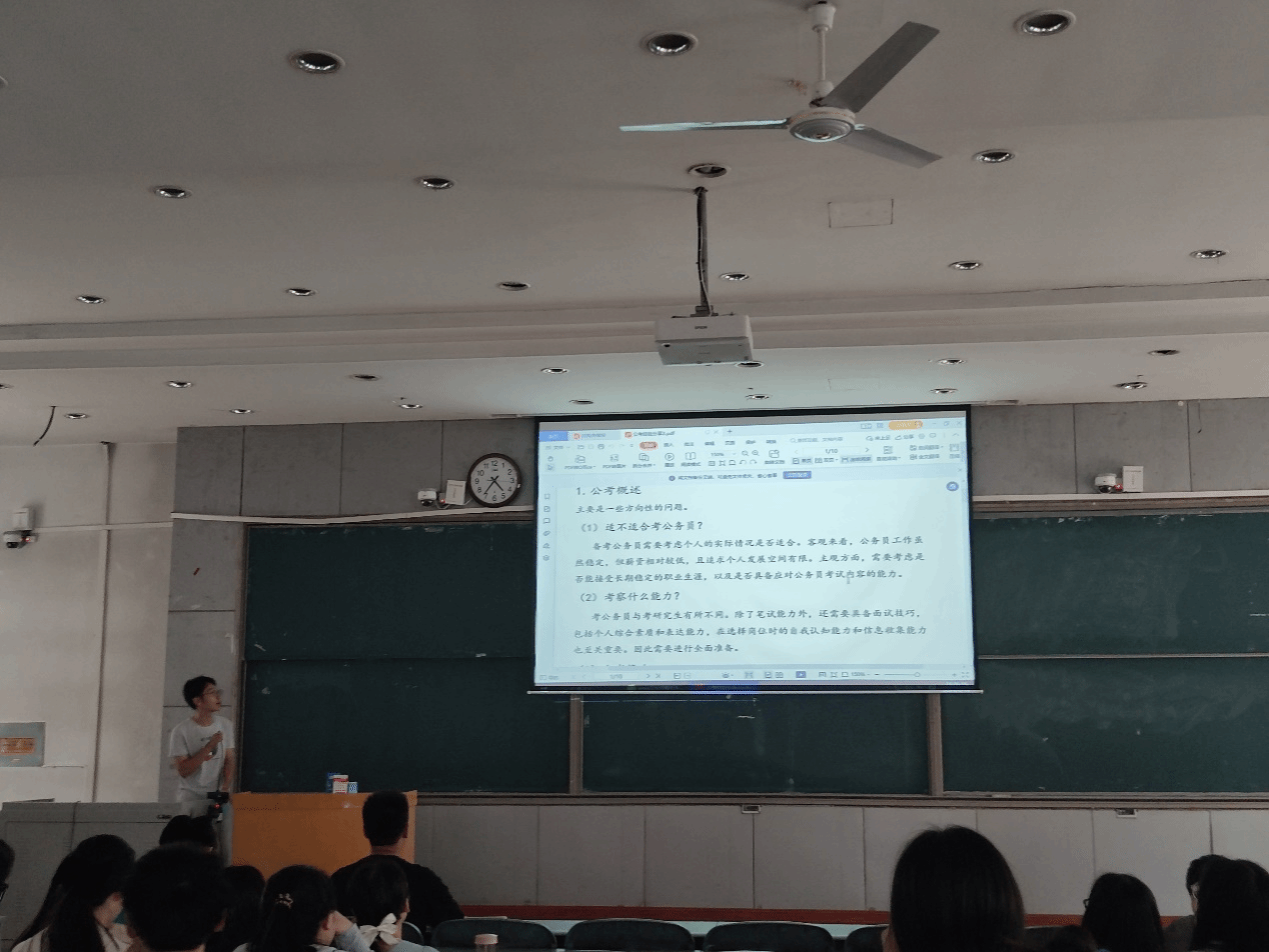 分享会上,高心怡和路佳琪强调了职业规划和实习经历的重要性,建议学弟学妹们尽早明确职业目标,多积累实习经验,提升竞争力,并在面试时深挖项目经验和公司信息。王浩分享了公务员考试方面的经验,建议先了解岗位详情,再选择适合自己的岗位,并考虑参加多个地区的公务员考试,以增加成功率,同时,在备考期间也要积极寻找其他工作机会。郭鹏浩等人介绍了考博升学需要关注的重点,强调了科研能力和申请材料的准备,包括研究计划书和推荐信,鼓励大家把失败看作下一次成功的准备。贾莉莉等人分享了考取教师编制的成功经验,建议提早准备,深读课本,关注招聘信息,面试时注重教学流程并且要表达清晰。