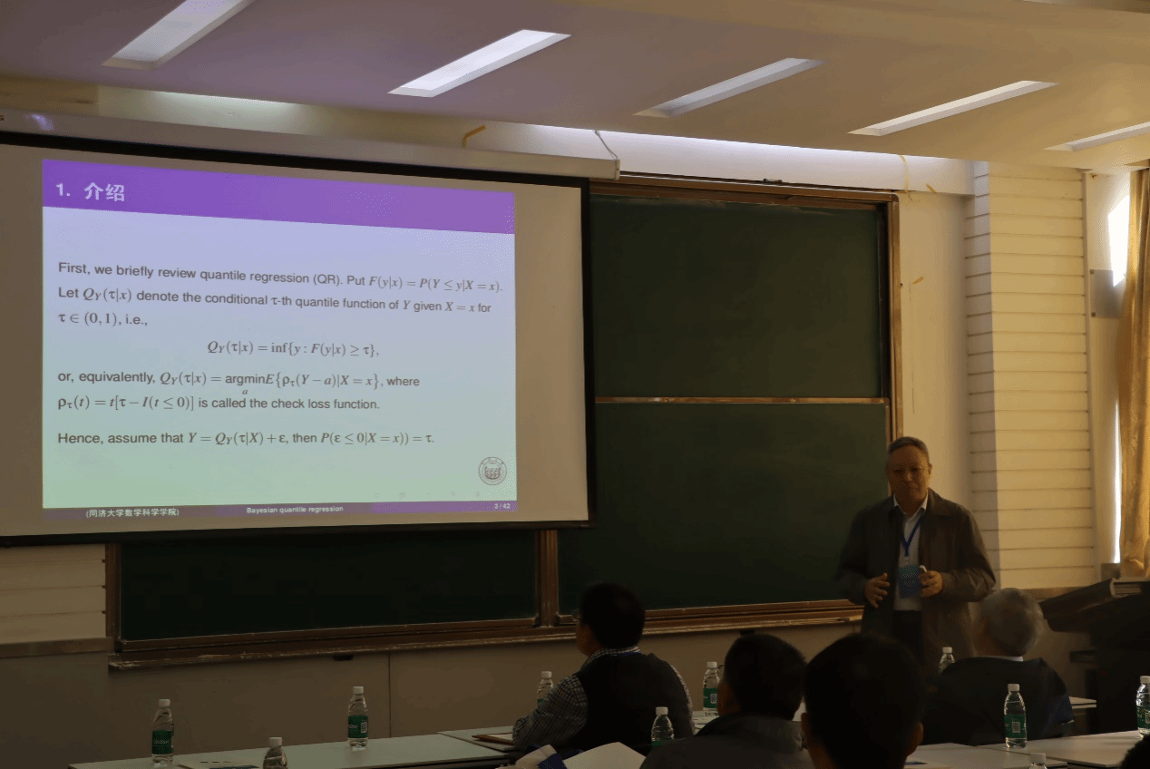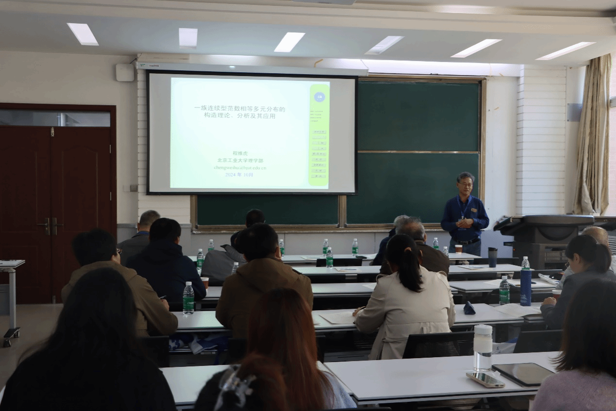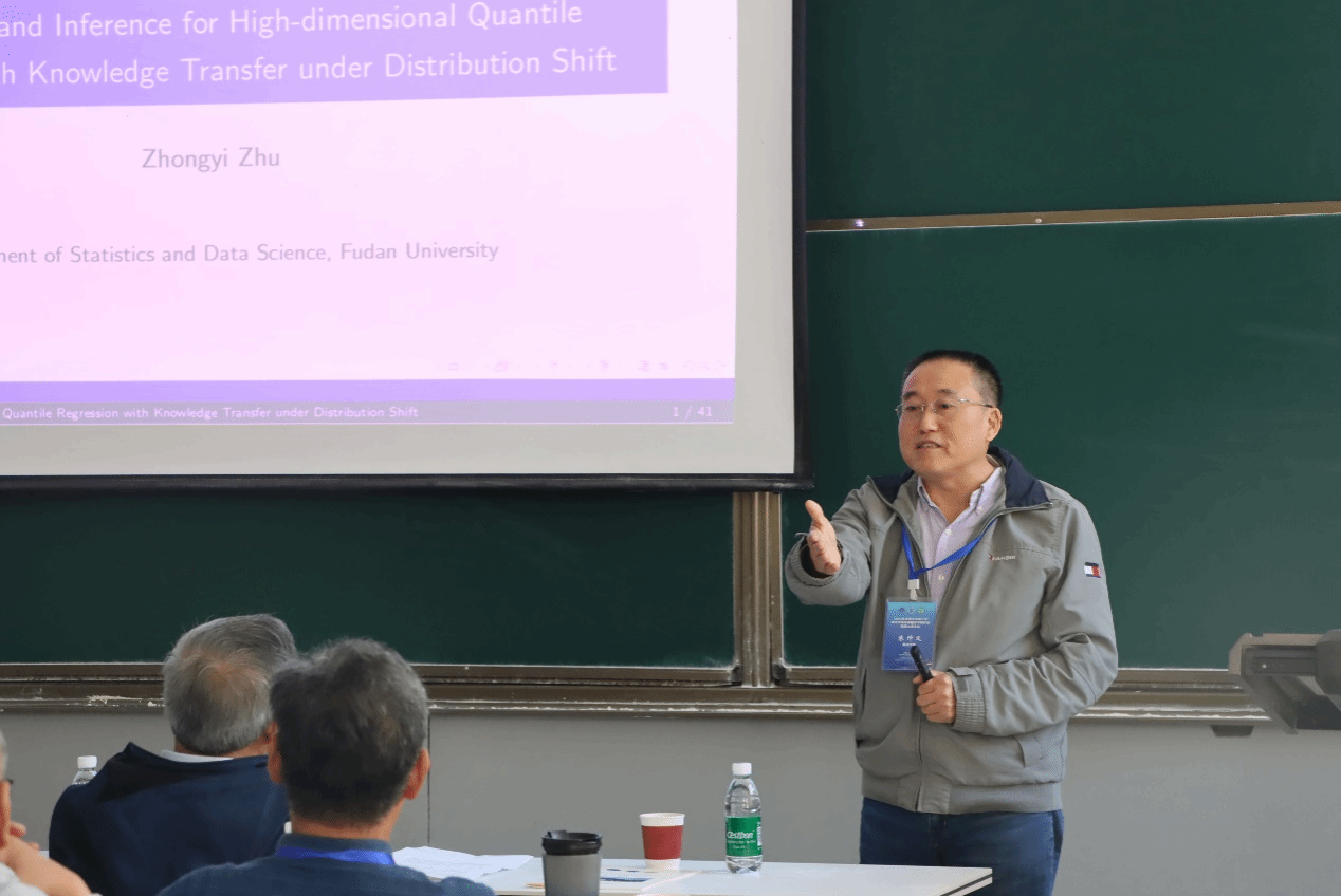论坛特邀北京工业大学程维虎教授、复旦大学朱仲义教授、清华大学林乾教授、北京师范大学郭旭教授、同济大学梁汉营教授、厦门大学王海斌教授、广西师范大学张军舰教授等知名专家,分别作了题为“一族连续型范数相等多元分布的构造理论、分析及其应用”、 “Estimation and inference for high-dimensional quantile regression with knowledge transfer under distribution shift”、 “深度学习的数学理论”、 “High-dimensional inference for single-index model with latent factors ”、 “Bayesian quantile regression for partially linear single-index model with longitudinal data ”、 “Weighted structured Lasso in high-dimensional linear Logistical regression ”、 “时空数据下的频域经验似然方法”的精彩报告。