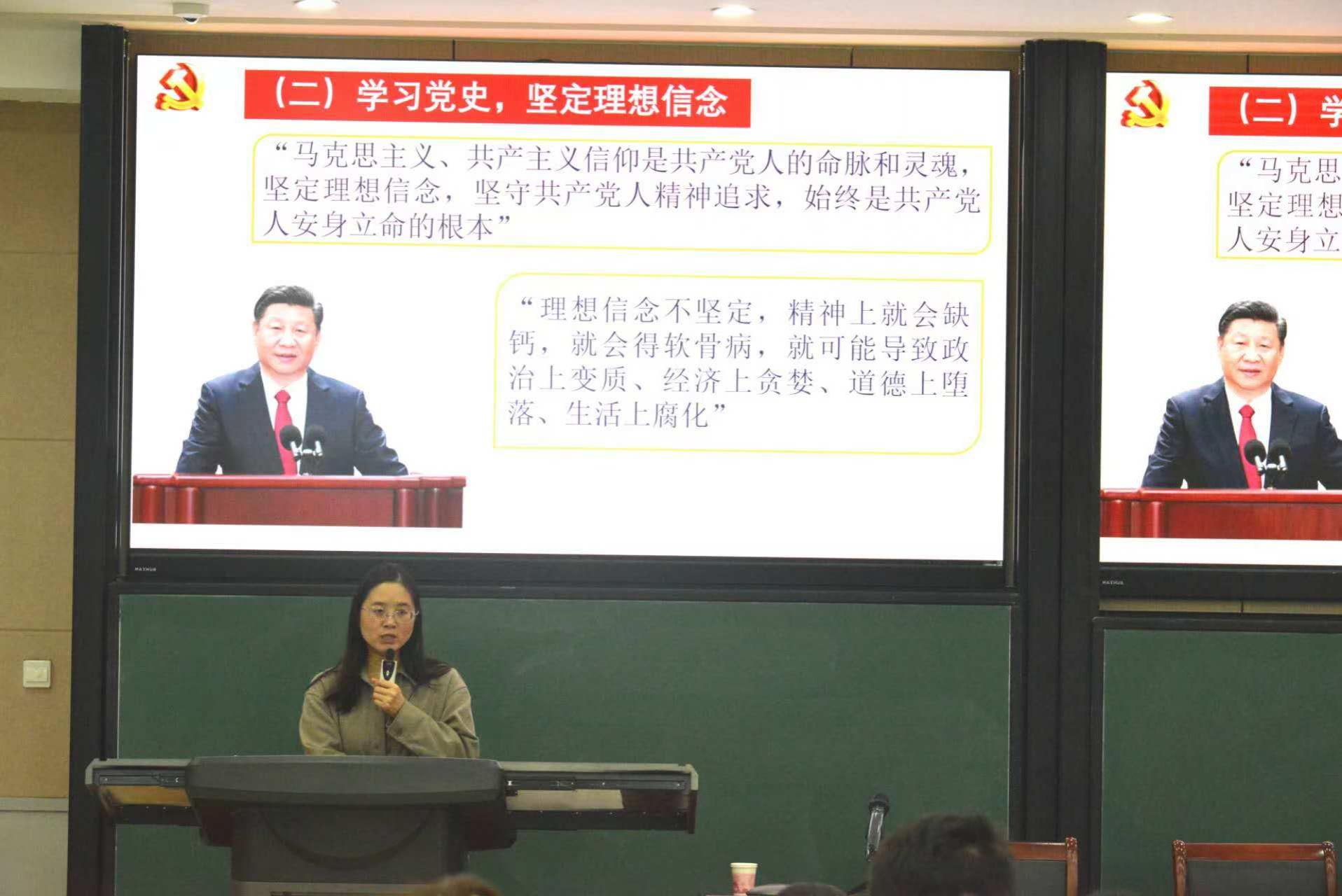 党课第五讲由校党委组织部副部长王玉珍主讲。王玉珍以“严格标准程序,积极争取入党”为主题,从发展党员的有关要求、首要标准、基本程序三个方面做出深入讲解。她强调,发展党员工作是党的建设的重要组成部分,必须坚持标准,严格程序,确保新发展党员的质量。入党积极分子要深入学习党章、党史以及党的主要会议精神和习近平总书记重要讲话精神,要提高自身的思想觉悟,端正入党动机,做到思想上入党,坚定理想信念;在日常学习生活中保持自律,明确使命担当,以实际行动争取早日加入中国共产党。