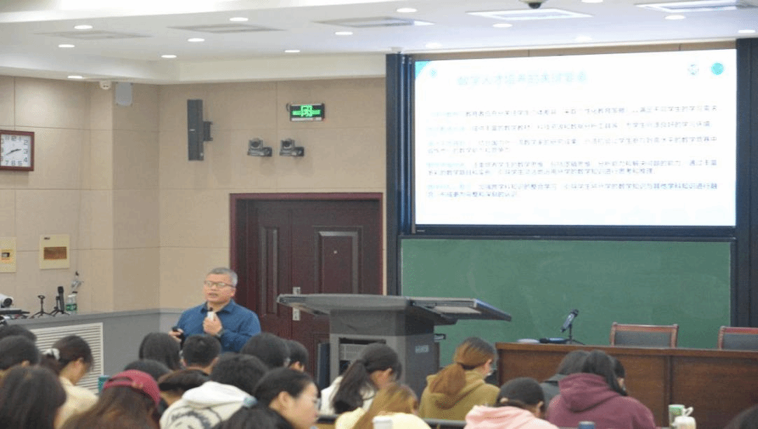 院长韩小森主讲。韩小森从创新在国家发展中的重要性讲起,重点讲述了数学人才培养方案,学生应具备的学习数学的技巧与方法等方面的内容。他指出,数学作为科技创新的理论基石,其重要性不言而喻,优秀数学人才更是关键驱动力,应加大对数学教育的投入,注重培养学生的创新思维和实践能力,并鼓励学生们将数学知识应用于实际问题中,通过数学建模、软件应用等实践活动,锻炼数学应用能力。