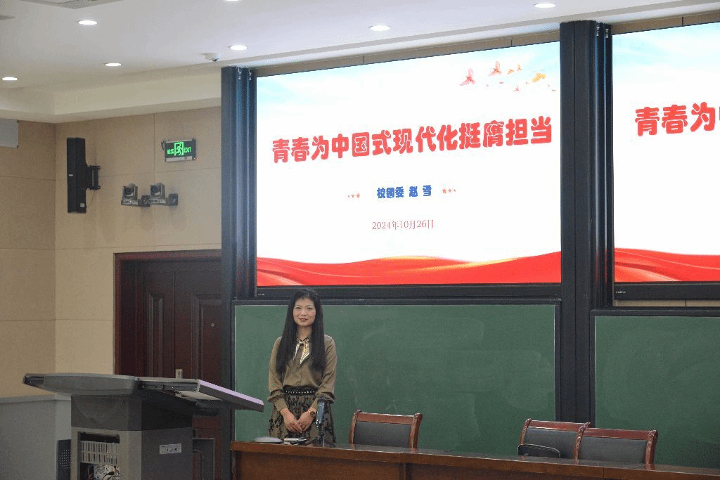党课第三讲由校团委副书记赵雪主讲。赵雪从“全面深化改革是推进中国式现代化的根本动力”、“新时代青年是推进中国式现代化的先锋力量”、“新时代青年为中国式现代化建设挺膺担当”三方面,以党的二十届三中全会精神为切入点,全面阐述了新时代青年如何为中国式现代化做出自己的贡献等问题。她强调以中国式现代化全面推进中华民族伟大复兴需要新时代青年坚定自信、勇毅前行,勇于创新、敢为人先,勇挑重担、砥砺奋斗,新时代青年生逢其时且重任在肩,更需要脚踏实地,艰苦奋斗。