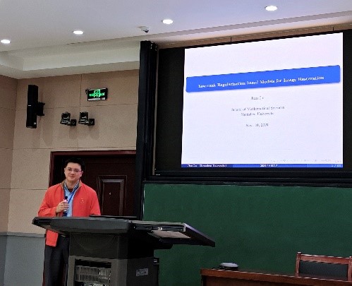 学术报告环节,专家们围绕机器学习理论、算法及应用展开交流,先后带来了“深度学习泛化与安全的数学理论”、“MLR-SNet (Meta-LR-Schedule-Net): Transferable LR Schedules for Heterogeneous Tasks”、“人工智能与科研范式变革:从实践到理论”、“Unsupervised Transfer Learning via Adversarial Contrastive Training”、“Understanding Data by Graph Theoretic Approaches”、“高精度地图制作中的智能算法与数学理论”、“Low-rank Matrix/Tensor Regularization Based Models for Image Restoration”等7场精彩纷呈的报告。报告内容前沿、深入浅出,现场与会师生讨论热烈,学术交流气氛活跃。