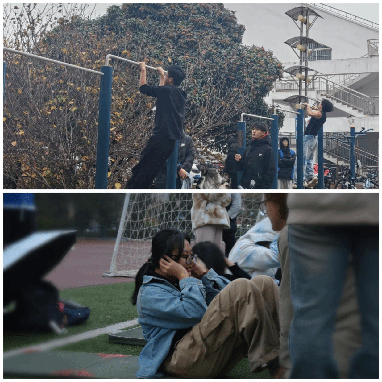 风为他们加油,云为他们助兴,一起一落谱写坚韧意志,一卧一坐尽展青年风采。