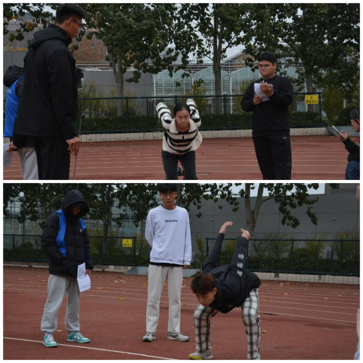 赛场边,同学们的加油声此起彼伏,那是青春活力的呐喊,激励着每一位运动员。志愿者们忙碌身影穿梭其中,为运动会的顺利开展保驾护航。