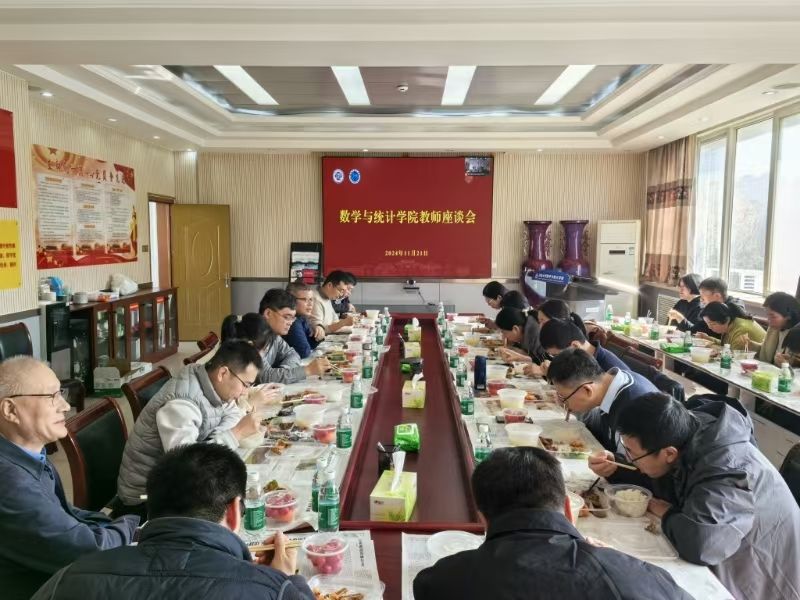 班子成员,各系部教师代表二十余人参加此次座谈。特邀首都师范大学教授、数学与统计学原院长吴可线上参会,座谈会由院长韩小森主持。