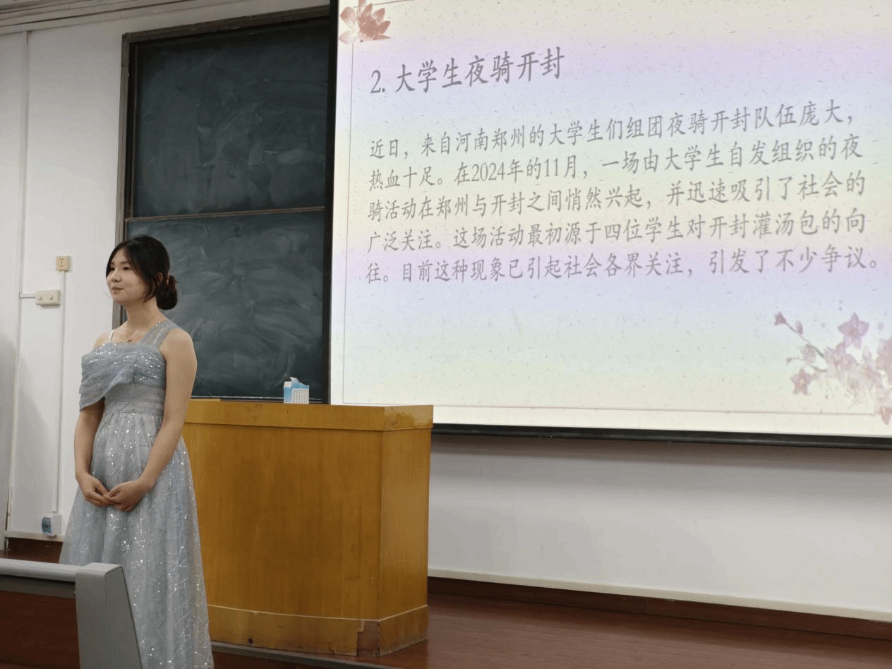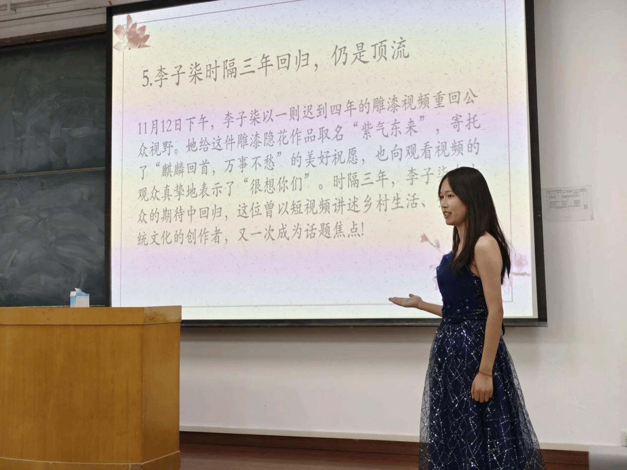 第二环节的现场时事政治评论,更是考验着选手们的知识底蕴与临场应变。每道题都是一段关于热议社会事件、人物事迹等的文字叙述。抽到题目后,选手们以自信之姿、敏锐之思,展现着当代大学生的家国情怀与时代担当。