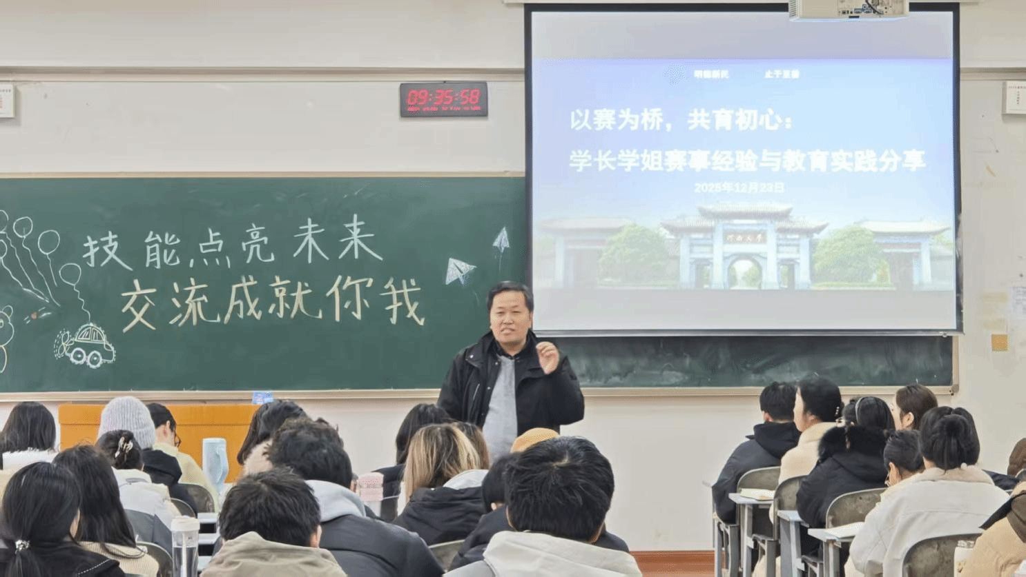 于12月23日举办了主题为“以赛为桥,共育初心”的学长学姐赛事经验与教育实践分享会。本次分享会由数学教育方向带头人张玉环老师组织,程永胜老师莅临指导,学科教学(数学)专业研究生及部分师范专业本科生参加。