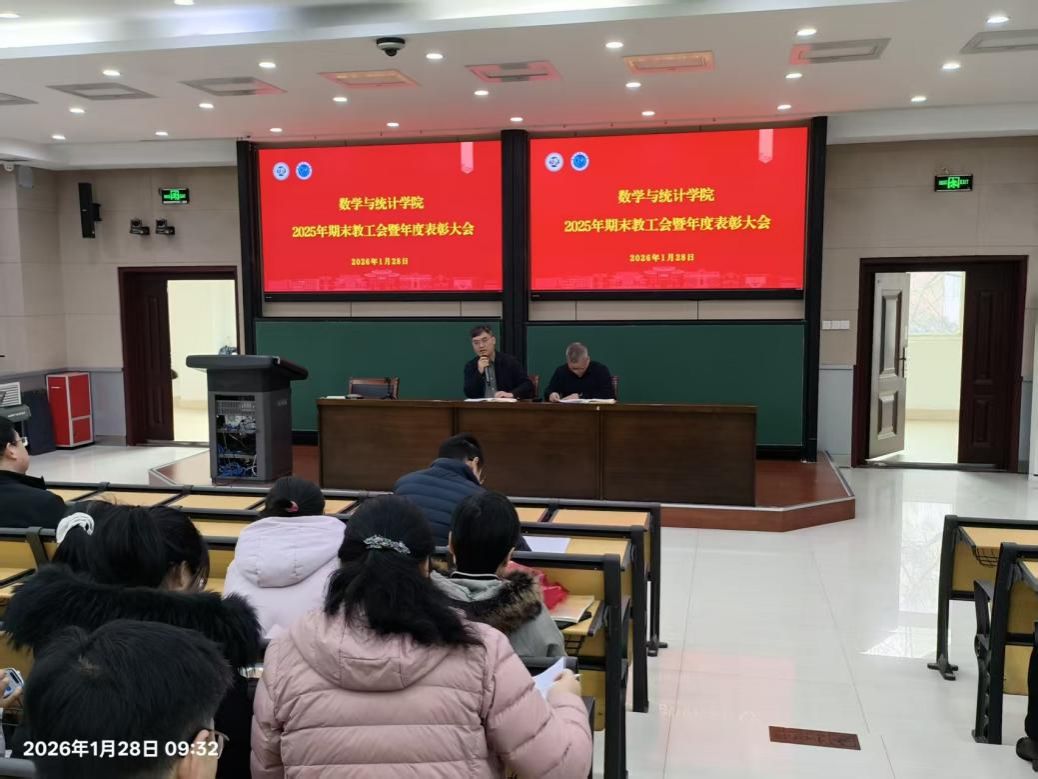 在南阶教室召开2025年期末全体教职工会暨年度表彰大会。会议由院党委书记曹志伟主持,全体教职工参加。