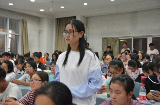 接下来的问答环节中,小17们积极提问,学长学姐也都倾心解惑。17级辅导员吴苏苏老师也来到现场,耐心为大家解答了一些学习方面的问题。