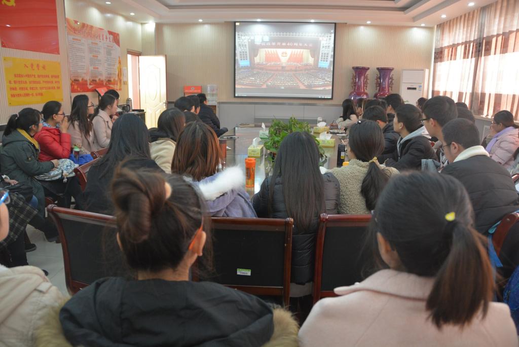 二楼会议室集体收看中央电视台“庆祝改革开放40周年大会”现场直播。性爱a片