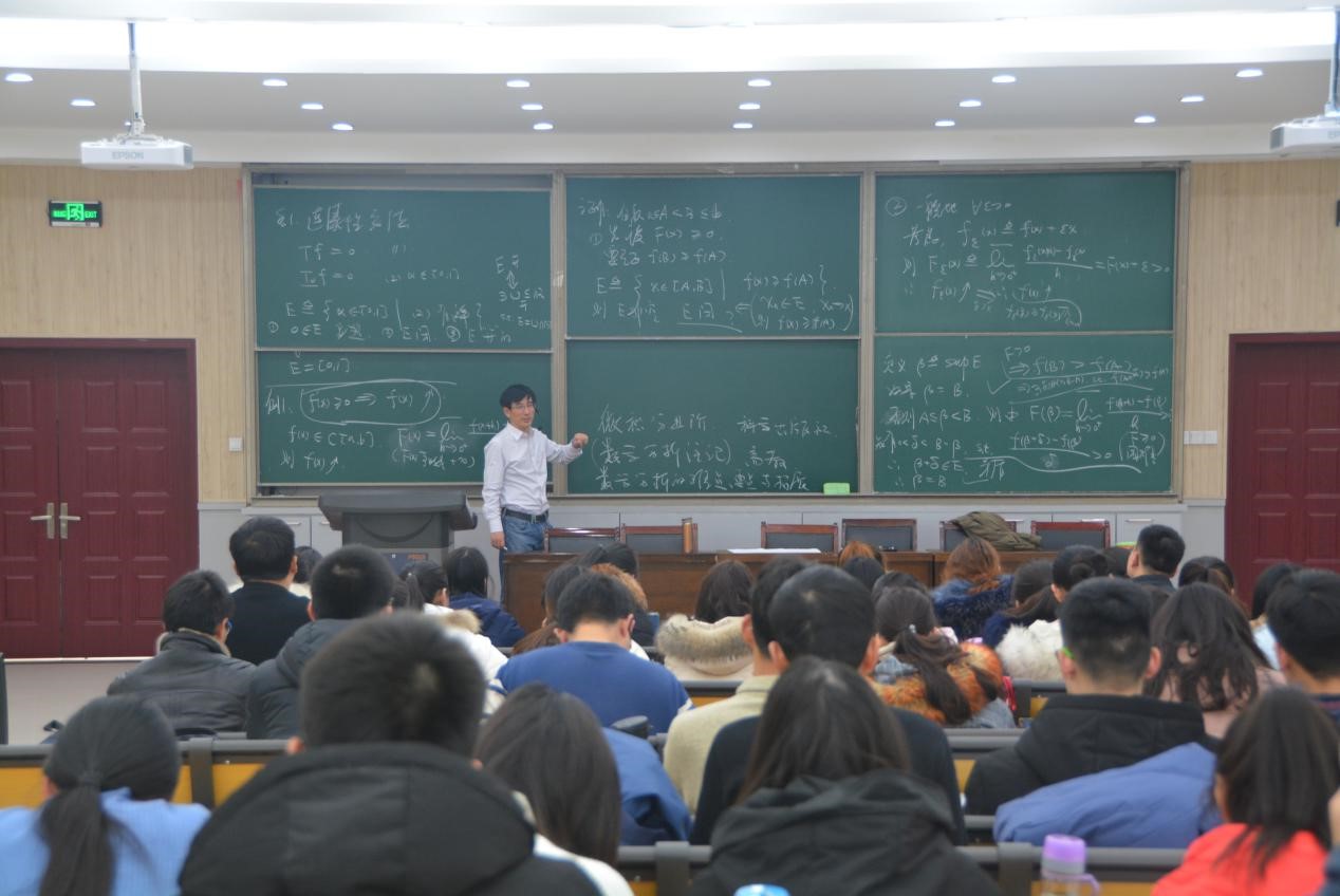 安排了专题讲座、前沿报告、座谈交流等一系列活动,深入细致地与营员进行了沟通交流。此次冬令营以楼红卫教授以及关庄丹教授的分析、代数的专题讲座为主,力求深入浅出地对国内外数学研究的几大方向进行详细地阐述。同时,此次冬令营还开展了解读数学发展现状的前沿讲座,分别是薛留根教授的大数据时代下的统计学、王耀华博士的广义相对论简介、葛志昊博士的科学计算及应用、杨会军博士的几个数学问题的拓扑解法、陈士超教授的分拆函数的奇偶性、肖运海教授的运筹优化、李怀彬博士的分形几何和复动力系统简介、吕广迎博士的随机微分方程的发展及应用和杨亦松教授的理论物理中的非线性方程介绍。让营员们在了解数学的发展前景和增加知识的同时,也拓宽了营员们的眼界。