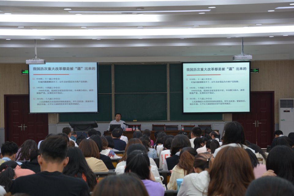 教授李保民在南阶梯教室作“习近平总书记论全面深化改革”专题报告,性爱a片