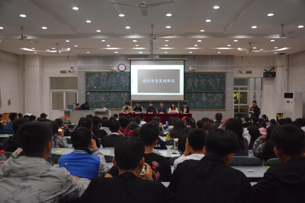 学习经验交流会暨宿舍文化节开幕式于金明综合楼7205教室举行。此次交流会邀请了六名成绩优异的高年级学长为2019级新生分享经验。活动由2018级学生杨培文主持。