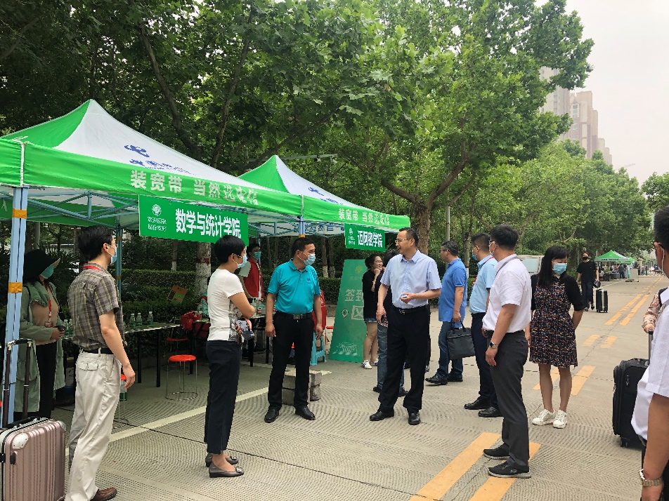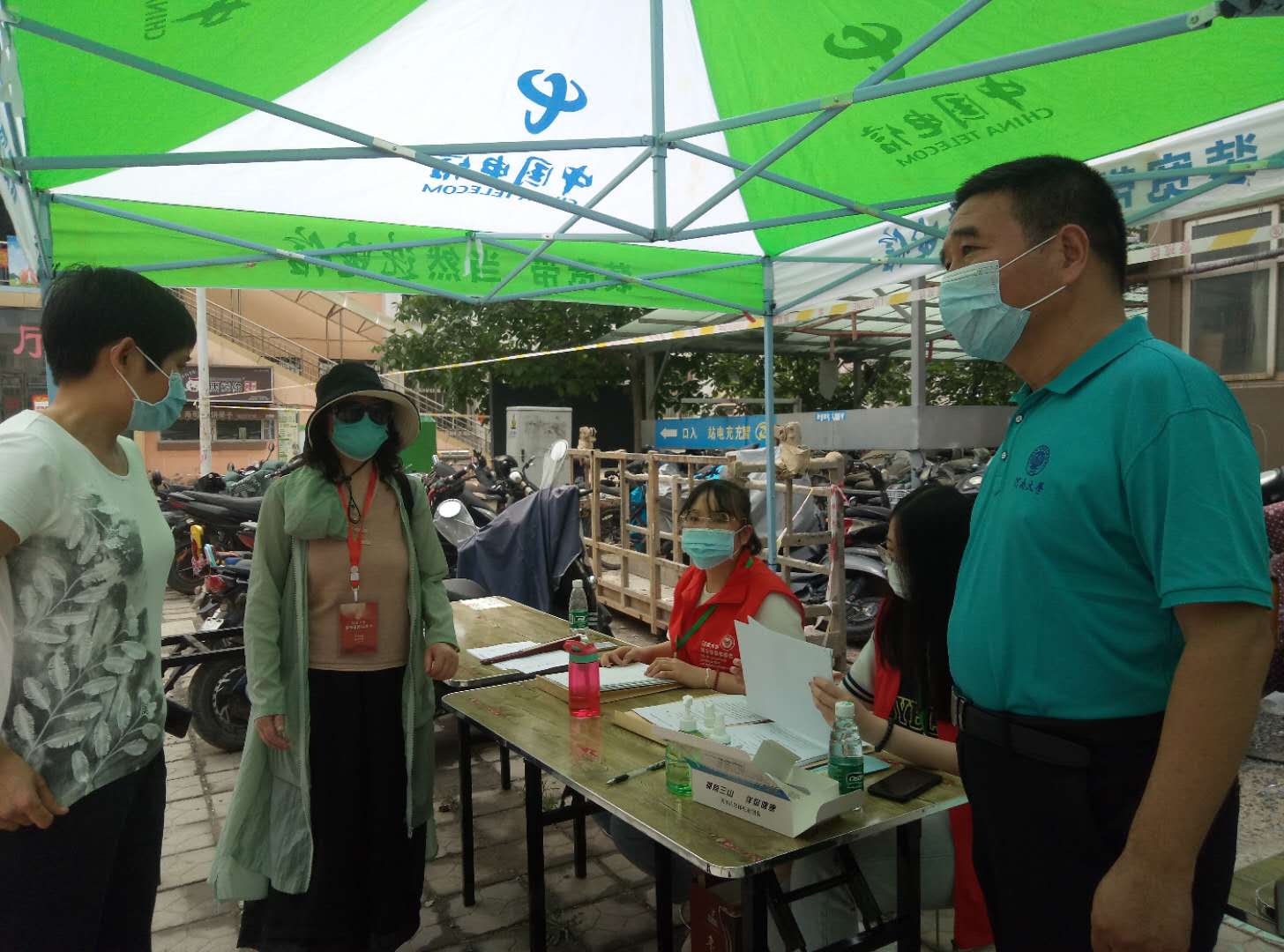 小西门和东苑公寓两个接待站,看望返校学生,指导疫情防控工作。