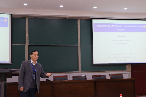 主办的“图像处理反问题与算法研讨会”,并做了题为“Fractal MIM solute transport model and an inverse problem”的学术报告。
