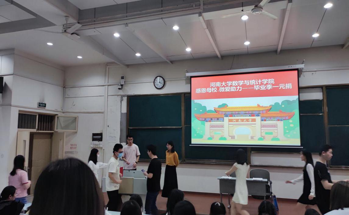 5月21日,2018级300余名毕业生于6405教室举行“感恩母校·微爱助力——毕业季一元捐”活动。本次活动中,2018级辅导员吴苏苏莅临现场,为活动做指导。毕业生党员和学生干部充分发挥了先锋模范带头作用,学生党员羌准准带头捐出一百元,随后毕业生们纷纷踊跃捐款,五元、十元、二十元......短短10分钟,便筹集了善款数百元。涓涓细流汇成大海,此次活动体现了“铁塔牌”学子对河大博爱的传承与践行,营造了温情河大、大爱河大的美好氛围。