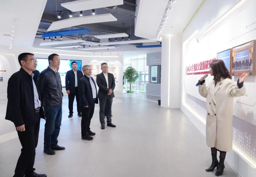 调研组在研究院领导陪同下,首先参观了北京大学重庆大数据研究院展厅,详细了解了研究院的组织框架、发展历程、研究成果、建设成绩和远景规划,并观看了研究院开发的“北太天元”数值计算通用软件的功能演示。