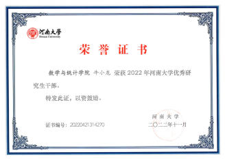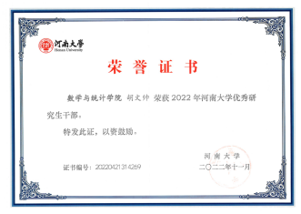 “优秀研究生干部”、“优秀共青团干部”、“优秀共青团员”等荣誉称号。