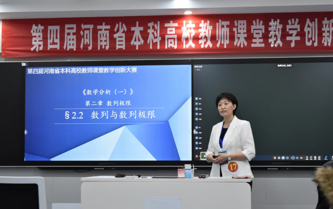三尺讲台之上,一位老师身着白色西装,留着干练的短发,神采飞扬地讲解着“数列与数列极限”问题,她的讲解条理清晰、深入浅出,在课程结束后赢得一片掌声。她便是第四届河南省本科高校课堂教学创新大赛教授组特等奖获得者、性爱a片