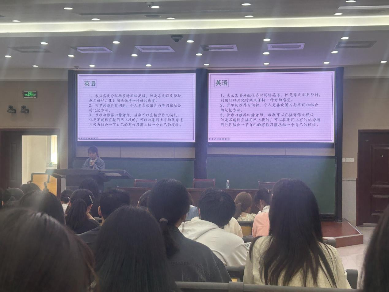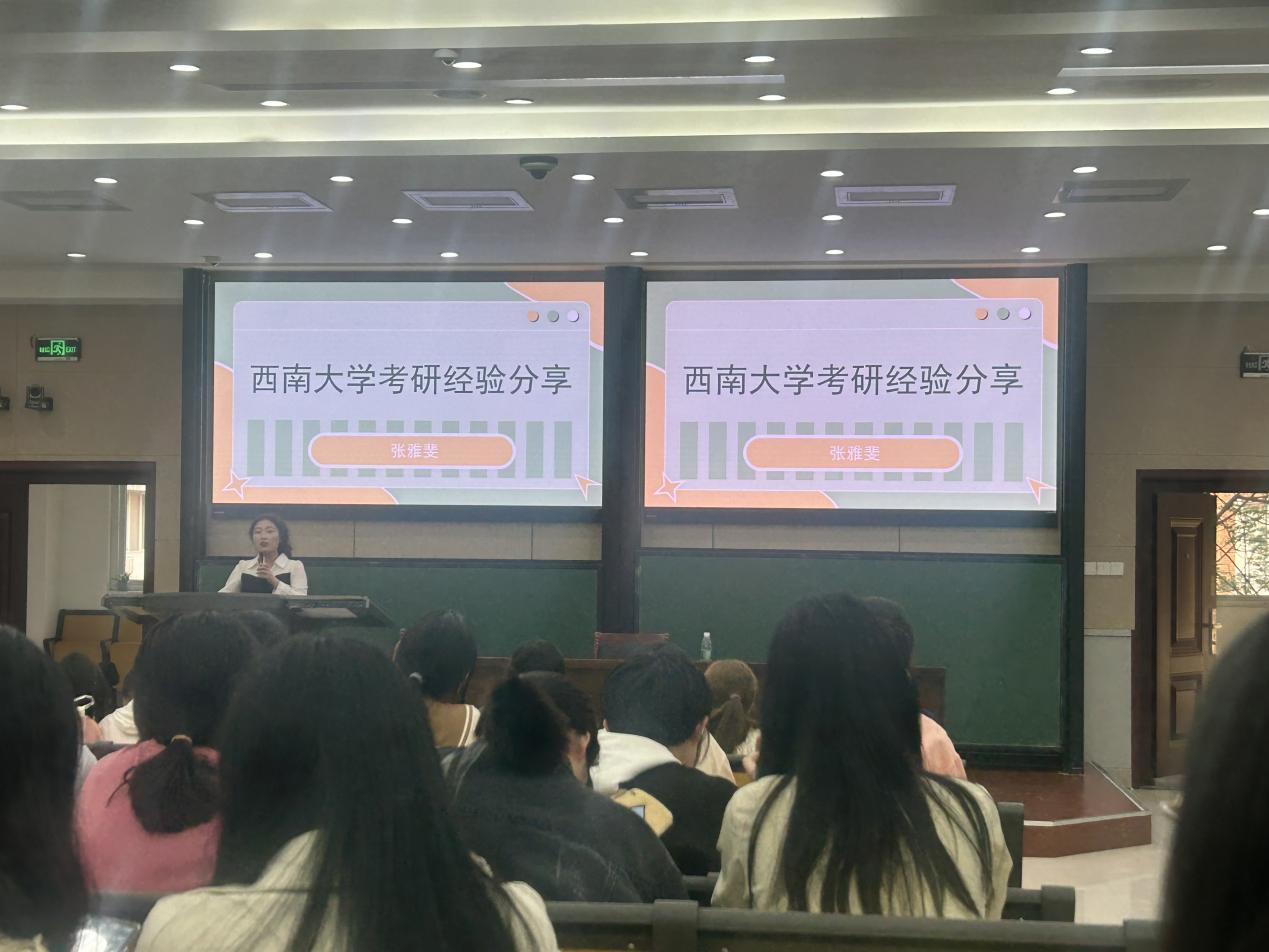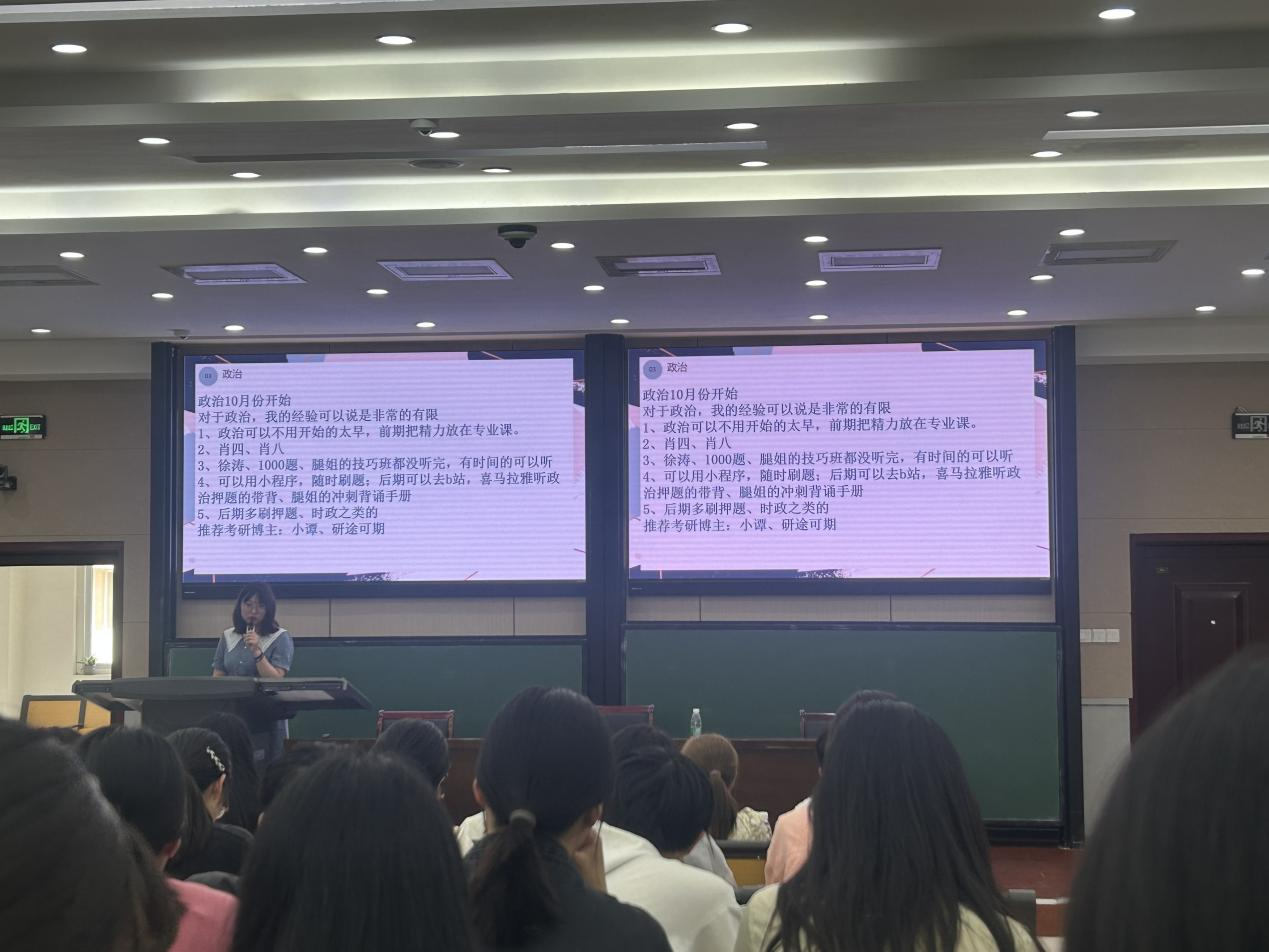 分享会伊始,安其丰就2019级学长学姐的考研情况进行了介绍,他指出,当前考研形势紧张,同学们不能掉以轻心,要结合自身学习情况提前做好目标院校规划,认真复习,珍惜时间。考研需要付出艰辛的努力,希望同学们在备战考研的过程中始终保持信心和恒心,同时也要敢于面对困难,解决困难,在遇到问题时可以向学长学姐、同学以及老师们寻求帮助,只有不断汲取成功经验,同学们才能少走弯路,也鼓励同学们报考河大本校,本专业的研究生。