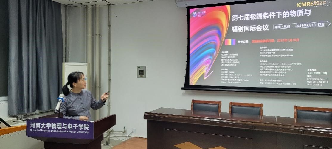 紧接着,MRE编辑部编辑李天惠向与会师生介绍了MRE杂志的整体情况,编委赵永涛教授对MRE杂志上发表的精彩文章作了通俗易懂的点评。会议结束后,MRE编辑部为广大师生带来了精美礼物—由九所余真研究员翻译的《高能量密度物理》一书。