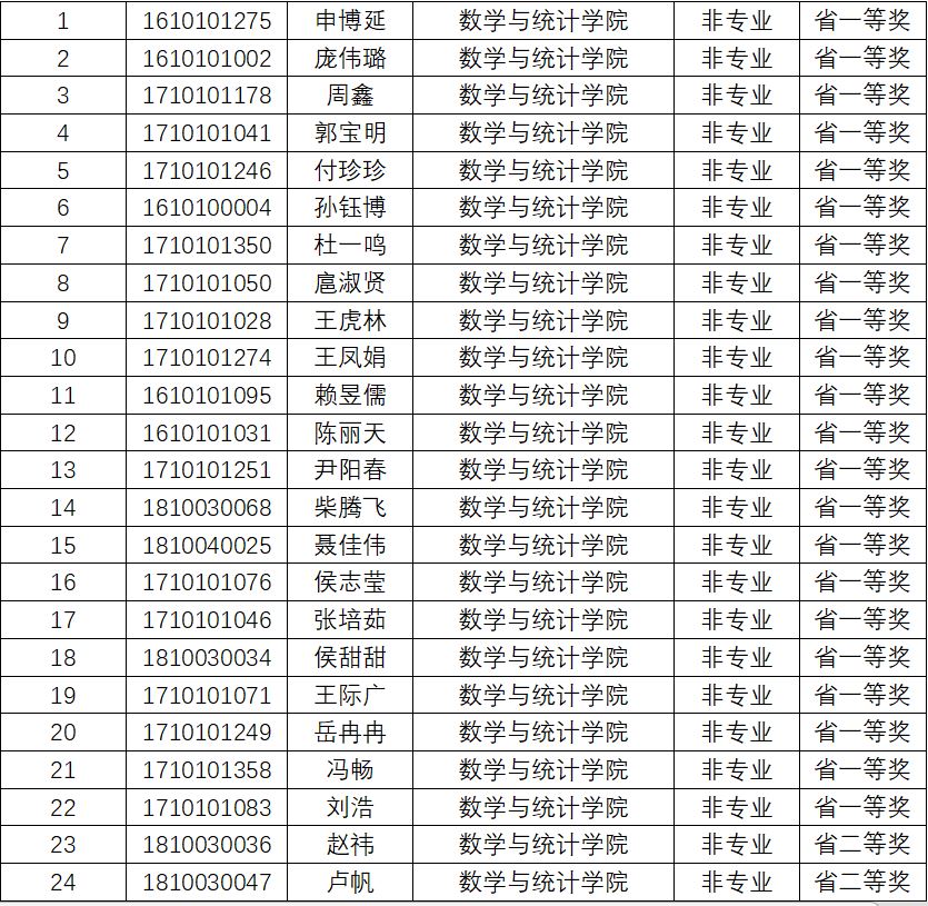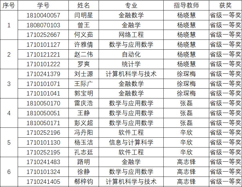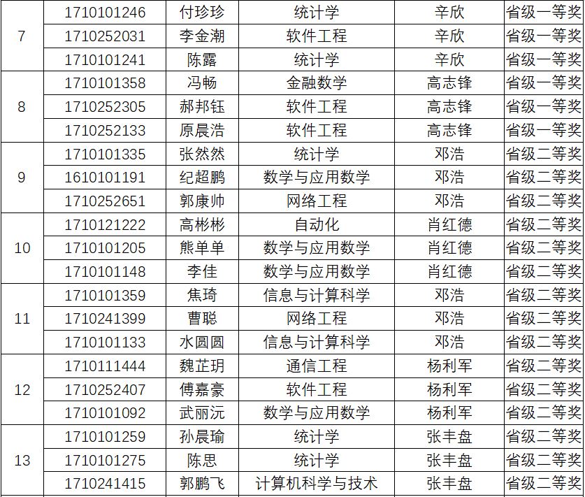 十五、2019年全国大学生数学建模竞赛,获省一等奖 8队;省二等奖 8队