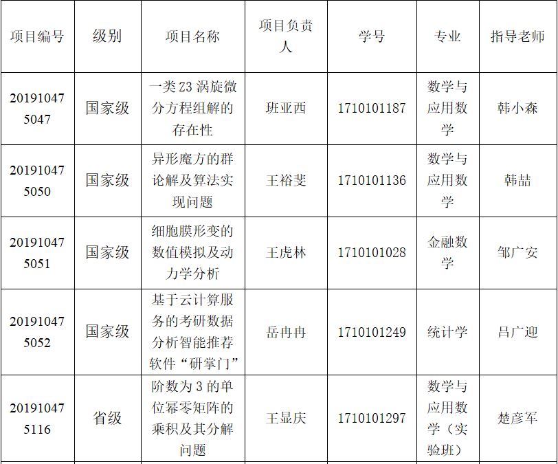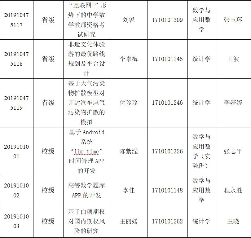 十八、2019年度大学生创新创业训练计划项目立项(共17项)
