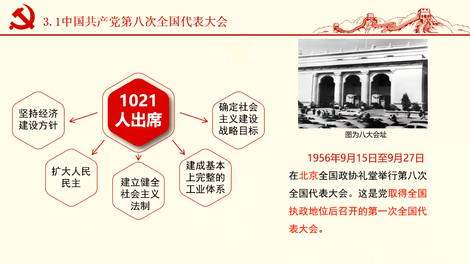 侯金秀同学详细地从中国共产党第八次全国代表大会、我国基础设施的建设、以及系列重要会议的召开等基本事件,讲述了1956年-1959年这一阶段我国发生的主要历史。