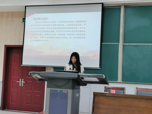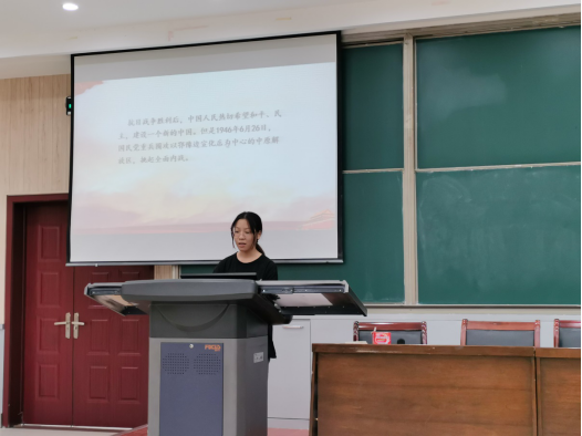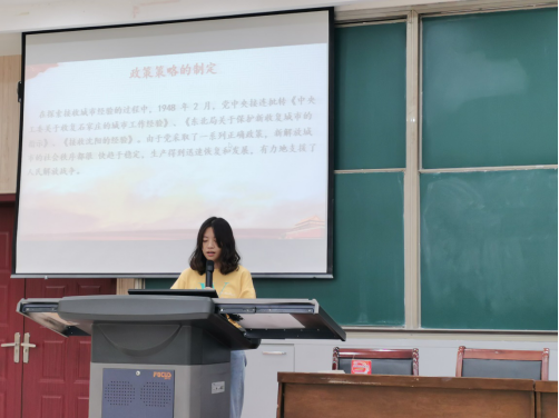 李淑婷从辽沈战役,淮海战役,平津战役这三大战役的背景出发,介绍了伟大的战略决战,让大家学习到三大战役的胜利为中国革命在全国胜利奠定了基础,是毛泽东军事思想的伟大胜利,也是人民战争的伟大胜利。