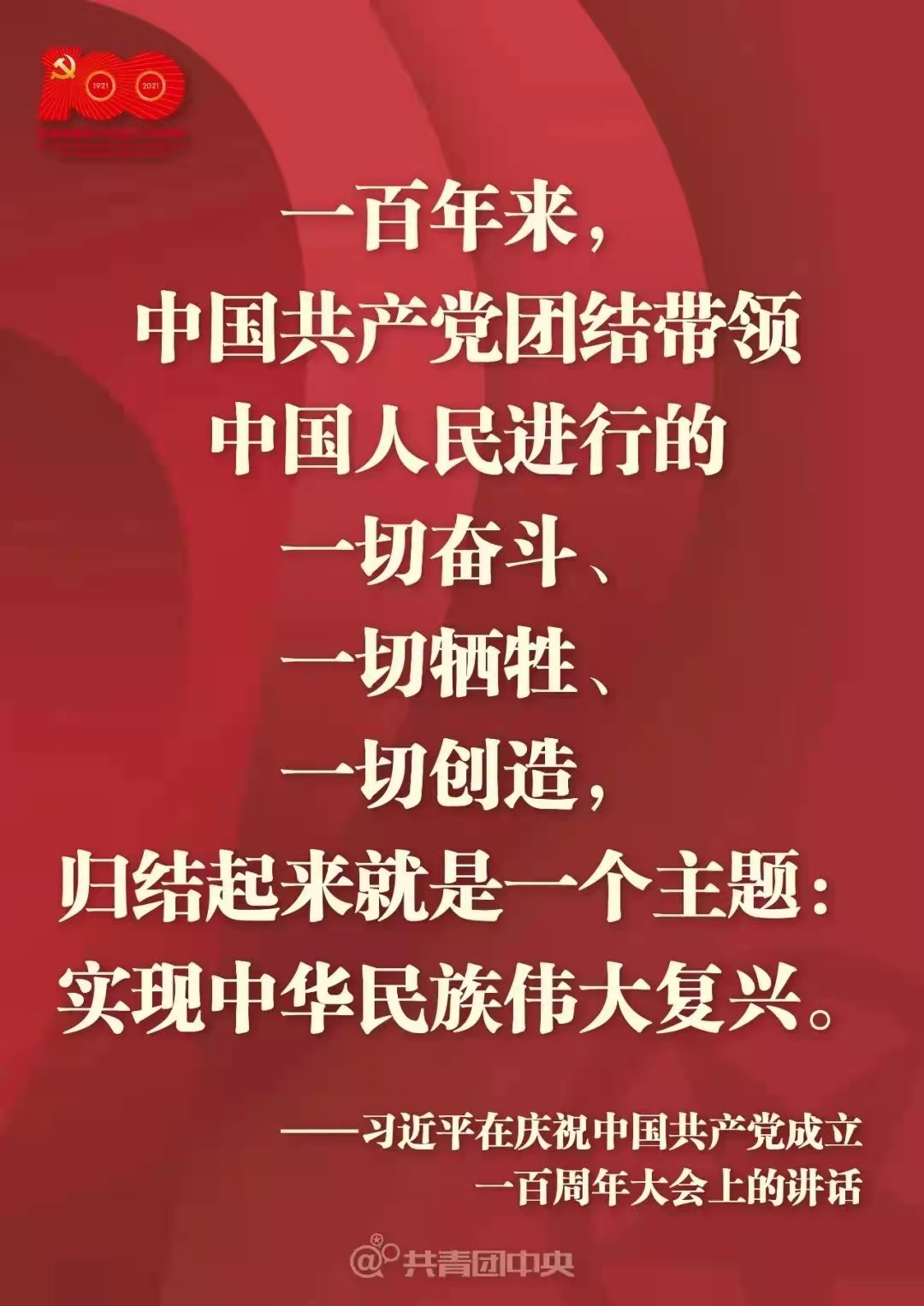 今天,在中国共产党历史上,在中华民族历史上,都是一个十分重大而庄严的日子。我们在这里隆重集会,同全党全国各族人民一道,庆祝中国共产党成立一百周年,回顾中国共产党百年奋斗的光辉历程,展望中华民族伟大复兴的光明前景。